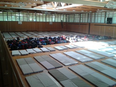 Schlafplatz für 400 Radler in der Batusa-Halle