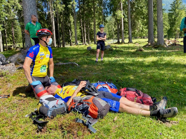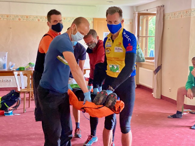 Im Rahmen der sehr realitätsnahen Fallbeispiele mit z.T. ordentlich viel Kunstblut und Stress für alle Beteiligten, mussten sich die Trainer bei diversen komplexen "Notfällen" beweisen. Dazu gehörten auch Berge- und Tragemethoden.