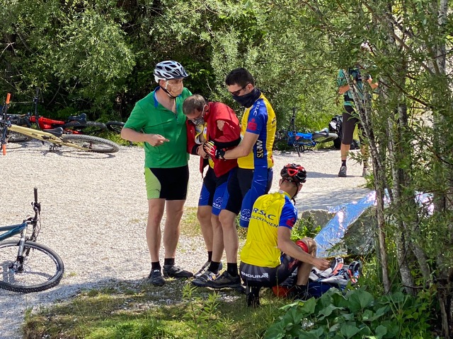 So fand die Ausbildung der RSLC-Trainer natürlich nicht mit „irgendeinem“ Rettungssanitäter in einem städtischen Bürokomplex statt, sondern draußen im Karwendel! Zudem zufällig auch zu verschiedenen Witterungen, am ersten Tag bei kühlem Regenwetter und am Sonntag bei bestem Sonnenschein. Ausbilder des RSLC-Teams an diesem Wochenende war Hermann Meyer, promovierter Sportwissenschaftler, Bundeslehrteam der DIMB, Ausbilder und Referent in diversen Verbänden wie z.B. DOSB, DSHS, Fahrtechniktrainer, Guide, etc.