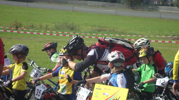 Der vorletzte Wettkampftag des Sparkassen Kids Cups am Sonntag, 06. Oktober 2013, in St. Johann/Tirol, fand bei wunderbarem Herbstwetter mit Sonnenschein und Temperaturen bis zu knapp 20°C statt. Die sehr gut organisierte Veranstaltung hatte das Start-Ziel-Gelände direkt auf der Laferrennbahn einer Trabrennbahn. Aber gleich danach ging es schon aus schmalen Trails ins Gelände mit vielen zum Teil engen Kurven und Wellen. Durch den Regen der letzten Tage hatte die Strecke teilweise sehr schwer zu fahrende schmierige Abschnitte mit tiefen, schlammigen Abschnitten.