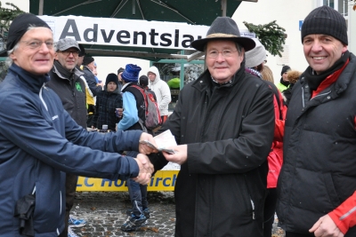 Der Vereinsvorstand stockte den Betrag auf 700 Euro auf. Gleichzeitig konnte der Vorstand von „Holzkirchen hilft", Wolfgang Huber, noch eine Spende der Kreissparkasse Miesbach-Tegernsee über 200,-- Euro durch Markus Scheer, den Leiter der Holzkirchner Geschäftsstelle, der ebenfalls am Adventslauf teilgenommen hatte, entgegen nehmen. Insgesamt kamen so bei diesem Adventslauf 900,-- Euro an Spenden für „Holzkirchen hilft" zusammen.