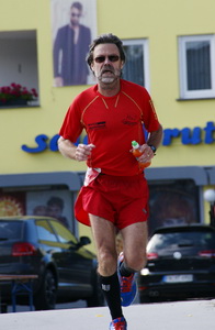 Nach mehreren Aufbau-Wettkämpfen über Halbmarathon in Bad Reichenhall (1:44 Stunden), Marathon in der Fränkischen Schweiz (3:41 Stunden) vor zwei Wochen und letze Woche beim 4. Sechs-Stundenlauf von München auf der Friedensmeile im Post-Sport-Park (62,85 Kilometer) sollte der Bodensee-Marathon ein echter Leistungstest werden. Rainer Leyendecker (1956 geboren) lief recht ambitioniert und riskant die 1. Runde in 1:39 Stunden zusammen mit der bis dahin besten Dame. So schnell unterwegs, rechnete er in der 2. Runde mit einem relativen Einbruch, hoffte aber noch auf 3:30 Std. und damit pro Kilometer unter 5 Min. im Schnitt.