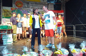 So kam es zum seltenen Kuriosum, dass Rainer als 60-Jähriger nicht nur seine Altersklasse gewann, sondern als Gastläufer auch den Gesamtsieg mit neuem Streckenrekord erlief. Doch damit nicht genug: Ein Blick vor Ort in die ausgedruckte Ultralauf-Statistik über 12 Stunden offenbarte, dass Rainer mit seinen grandiosen 127,891 km sogar den bisherigen deutschen AK Rekord um 5 km übertraf und er damit in der Jahresweltbestenliste der M60er nur 1 km hinter dem Führenden auf Platz 2 liegt. Also eine Weltklasseleistung von unserem Rainer, die auch bei der Siegerehrung abends um 20 Uhr gebührend moderiert und gefeiert wurde.