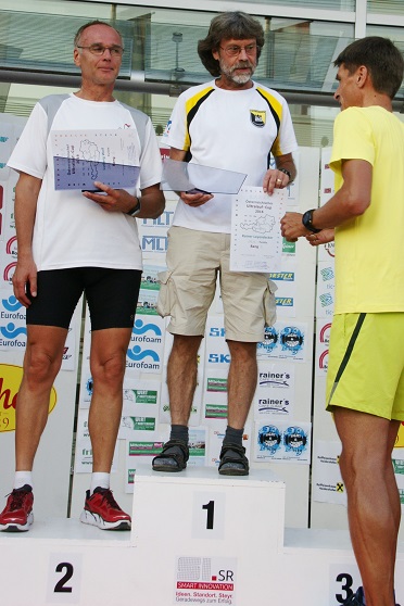 Es war super spannend wie selten bei Ultras. Bei den Damen überholte Karin Augustin gegen Ende noch die bis dahin führende Angelika Huemer-Toff und siegte mit 68,97 km und gut 500 m Vorsprung. Bei den Herren konnte in der letzten Stunde Klemens Huemer mit 76,04 km den führenden Emil Jaidhauser noch abfangen und mit seinen 55 Runden um fast 400 m hinter sich lassen. Und beim Kampf um Platz 3 gelang es Rainer Leyendecker nach fast 5 Std. sogar, den Führenden der Cup-Wertung Andreas Michalitz zu überholen und bis zum Ende bei flottem Tempo etwa 300 m Vorsprung zu halten. So erlief sich Rainer mit grandiosen 73,24 km Platz 3 sowohl in Steyr als auch in der Gesamtwertung des Cups (nach den 100 km in Wien und den 12 Std. in Prambachkirchen) und zu guter Letzt mit 3,8 km Vorsprung aktuell Platz 1 der Weltjahresbestenliste Männer 60 . Klar vor ihm siegte im Cup Emil ganz knapp vor Andreas, während bei den Damen Karin Augustin dominierte. Bei Rainer bewährte sich mal wieder seine eher untypische und ungewöhnliche Strategie und Taktik im Rennen, die viele für falsch halten.