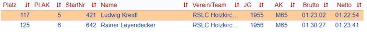 Hier folgen die Resultate der beiden einzigen Starter für unseren RSLC über die 13 km und die 17 km. Dabei finishte Rainer jeweils mit Nettozeiten knapp hinter Ludwig. Aus den Bruttozeiten geht hervor, dass Ludwig immer in der 1. flotten Startgruppe ins Rennen ging und Rainer etwa 6-7 Minuten später mit der langsameren Gruppe loslief. Am 20. März war auch Wilfried als Zuschauer mit dabei, dem wir diese Fotos von uns verdanken.