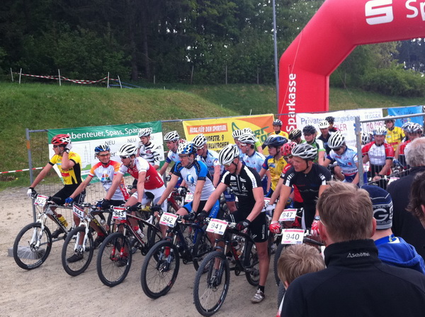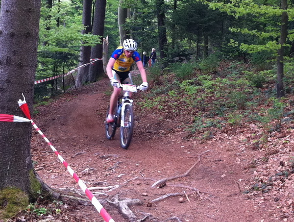 Die Strecke war mit einigen schwierigen Passagen gespickt und mit ca . 70 Hm pro Runde ziemlich intensiv. Ein kleiner Regenschauer verwandelte die wurzlige Strecke zu Teil sehr rutschig und gefährlich.