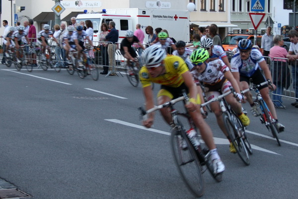 Hier räumte der ehemalige Milram-Profi Grischa Janorschke vom Team Nutrxxion Sparkasse kräftig ab. Bereits nach vier Runden hatte sich ein Sturz u.a. mit Benjamin Edmüller ereignet. Dadurch bildete sich eine vierköpfige Spitzengruppe mit Leif Lampater, vom Rudy Project Racing Team Irschenberg, Sebastian Körber, Team Nutrxxion Sparkasse, und Thomas Lechermann, Team Baier Landshut. Die Lücke konnte vom Feld nicht mehr zu gefahren werden. Die Fahrer waren sich wohl nicht einig, wer die Körner für die Verfolgung spendieren sollte. Der Sieger fetzte mit einem Schnitt von 41,27 km/h durch die engen Kurven, die Herunterbremsen und wieder Antreten bedeuten.