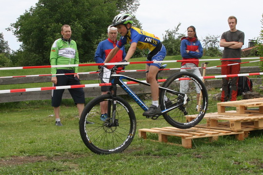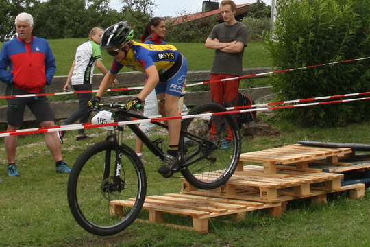 Schlag auf Schlag ging es: Verschlungene Pfade, in die Sprünge und Hindernisse in Form von Baumstämmen, Paletten und trickigen Kurven eingebaut waren, nutzten das Gelände optimal aus und fanden großen Gefallen bei den Aktiven genauso wie bei den Zuschauern, die das gesamte Areal wunderbar einsehen konnten.