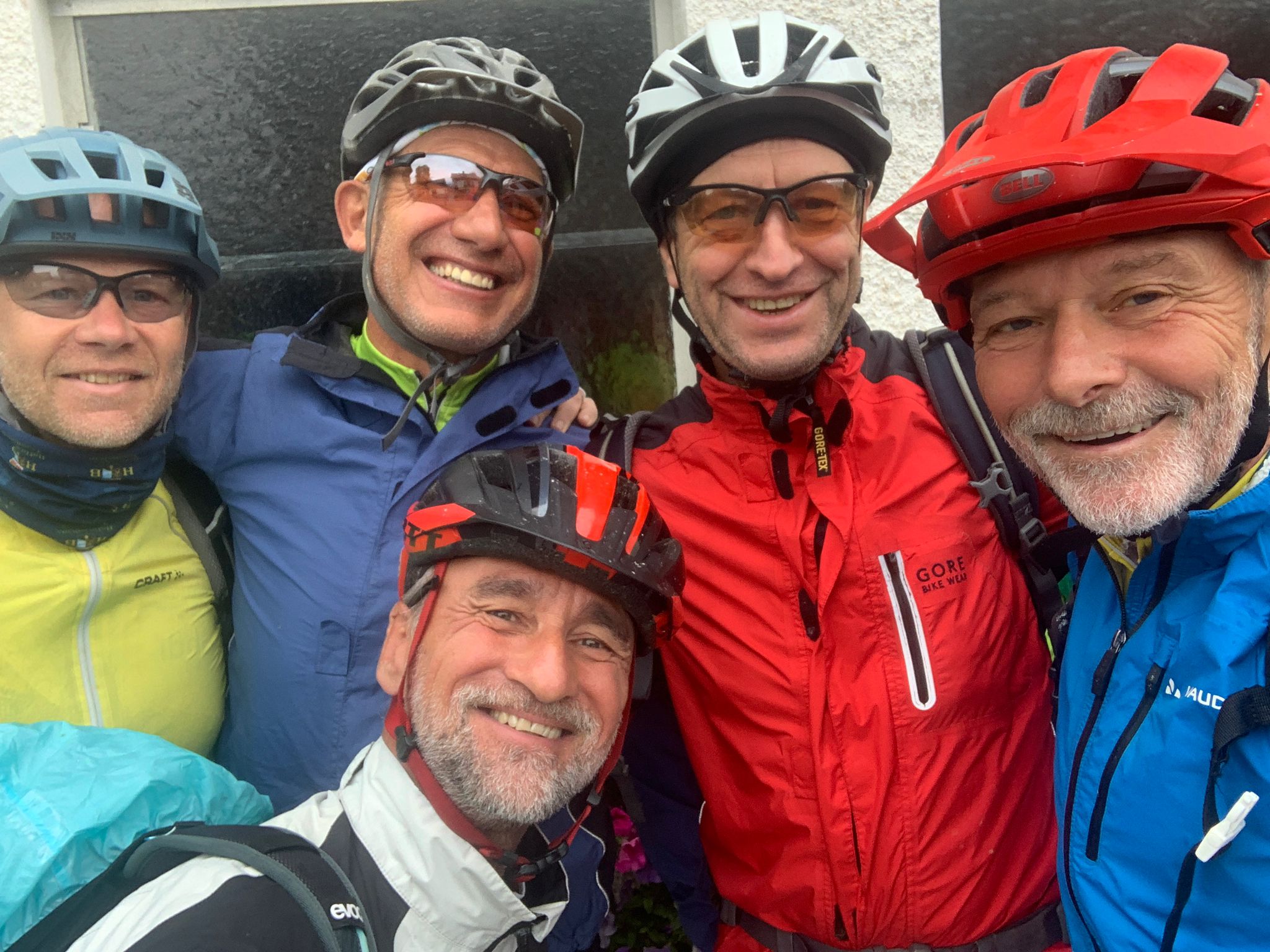 Heuer hatten sich die fünf Alpenüberquerer (im Bild unten von links nach rechts) Thomas, Helmut, Gebhard, Thomas und Manfred für die Transalp eine östlich gelegene Route vorgenommen.